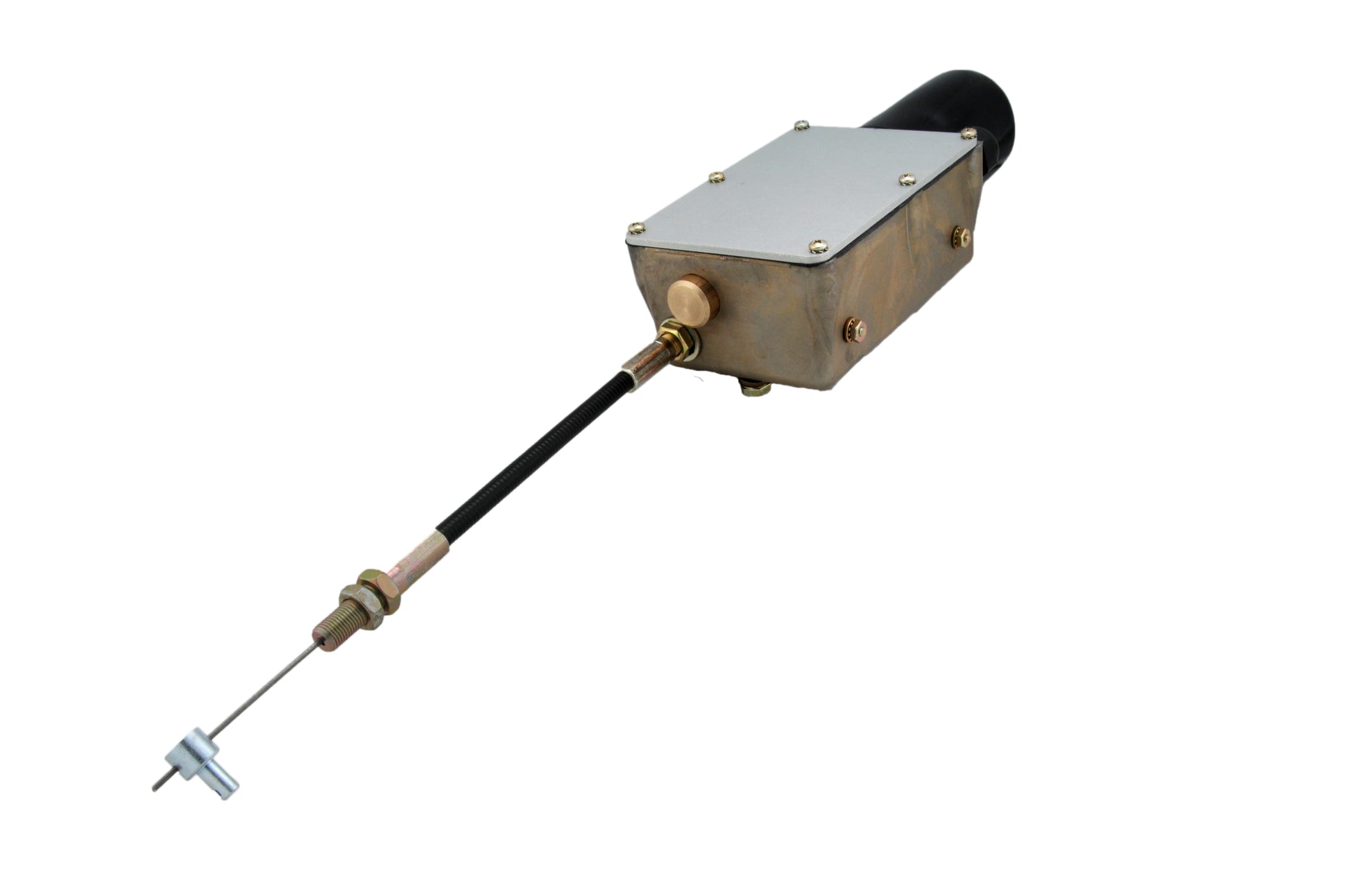 12VDC, 16" cable output, shock mount, 1/2 inches per second, no feedback.